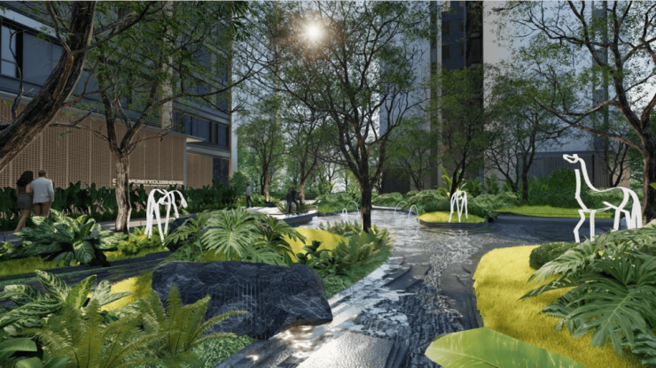 在招商时代公园,参与建筑间生长的点状公园。首先,充分利用城市土地间的“金角银边”规划社交场景公园,让公园城市更具社交属性;其次,充分注重住宅及产业园区内的园林打造,让宅间公园根植于生活肌理。