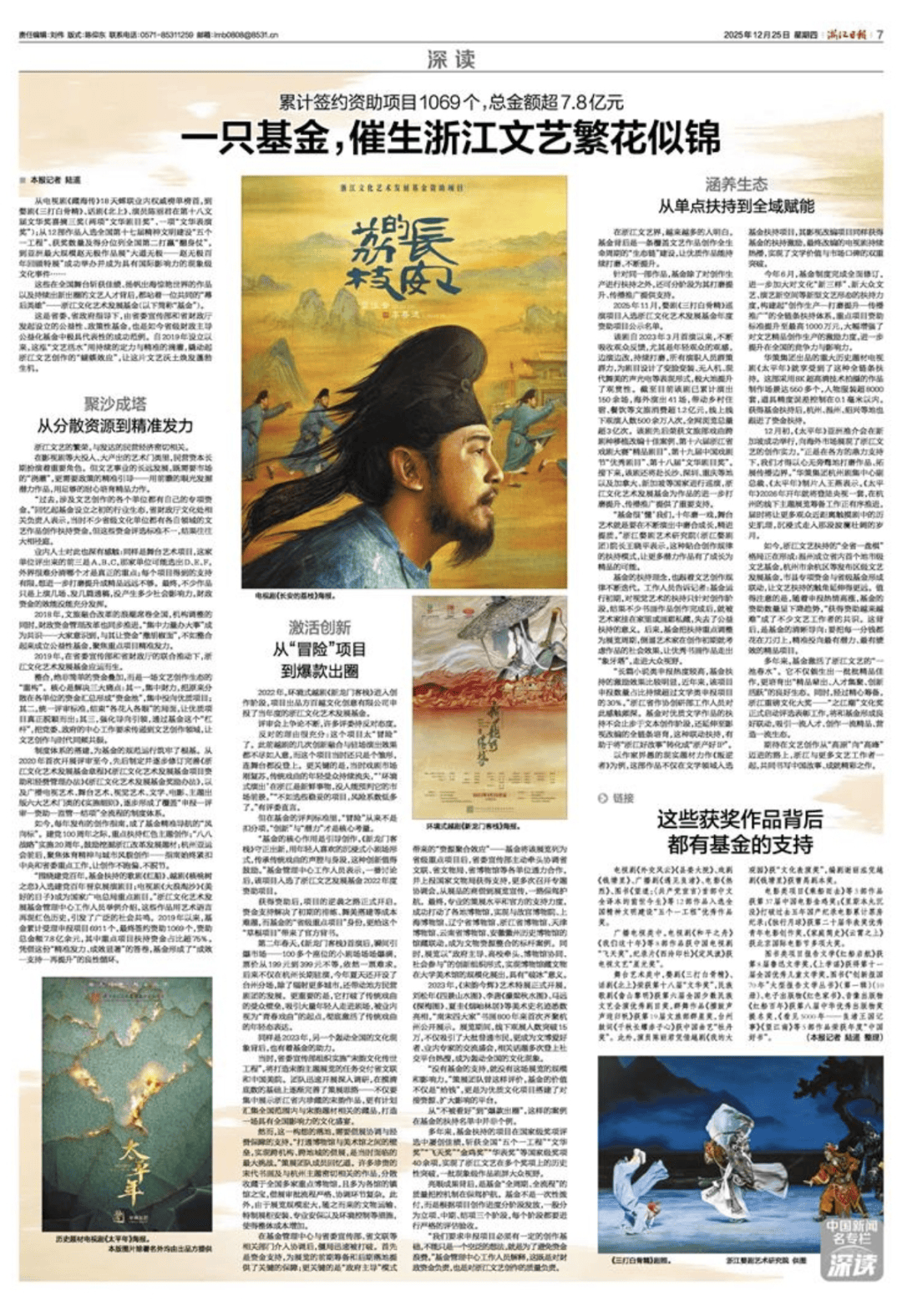 MG冰球突破MG冰球突破MG冰球突破近日,《浙江日报》刊登《一只基金,催生浙江文艺繁花似锦:累计签约资助项目1069个,总金额超7.8亿元》,